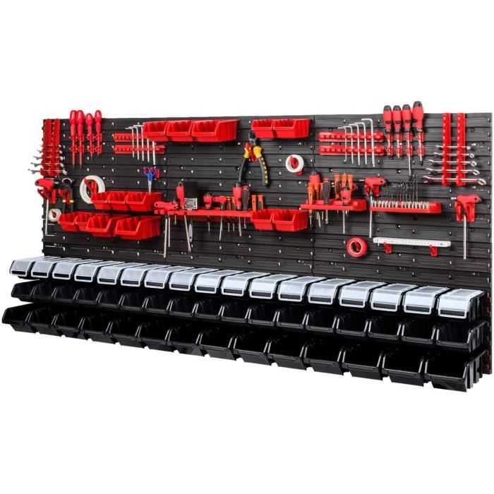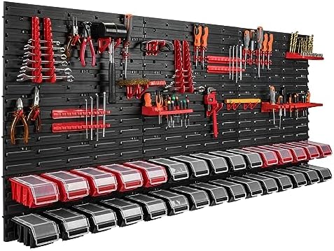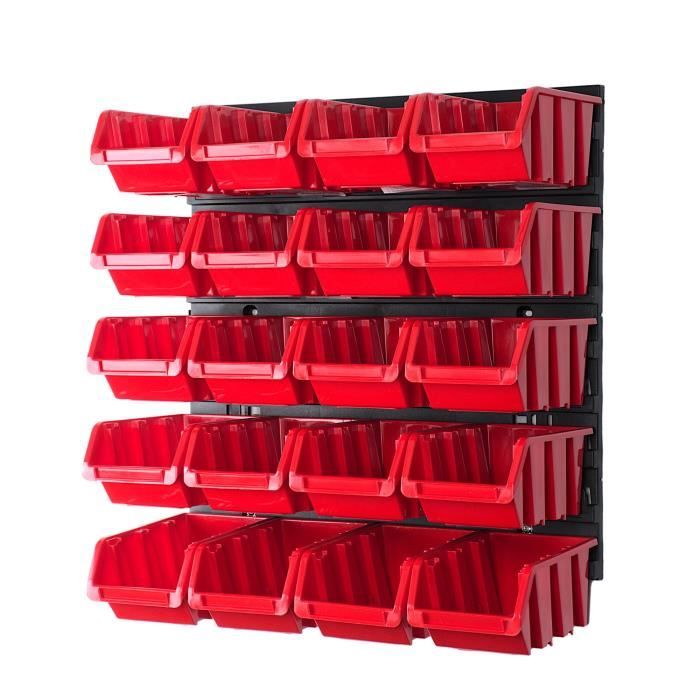 Coucou ! Tu manques de place et ton bureau ou ton atelier est en bordel ? Ce système de rangement mural est ton sauveur. Le lot comprend : 4 étagères murales (Wandregal) ET 40 boîtes en plastique empilables de couleur rouge vif. Marque PAFEN, fabriqué en Pologne. Les dimensions des étagères : environ 795 mm de large, 770 mm de haut. Les boîtes, en plastique solide, se clipsent sur les étagères et entre elles, c'est hyper modulable. Tu peux tout ranger : outils, pièces détachées, fournitures de bureau, produits de beauté, jouets... L'installation est rapide (Montage facile sur le mur). Le rouge, c'est pratique pour trouver vite ce qu'on cherche. Produit neuf, avec une garantie fabricant de 2 ans. EAN : 5057362312130. C'est l'idéal pour gagner de l'espace au sol, tout avoir à portée de main, et enfin être organisé(e). Design sobre et fonctionnel. Parfait pour le garage, l'atelier, la buanderie, la chambre d'enfant ou même un commerce. Fini le fouillis !